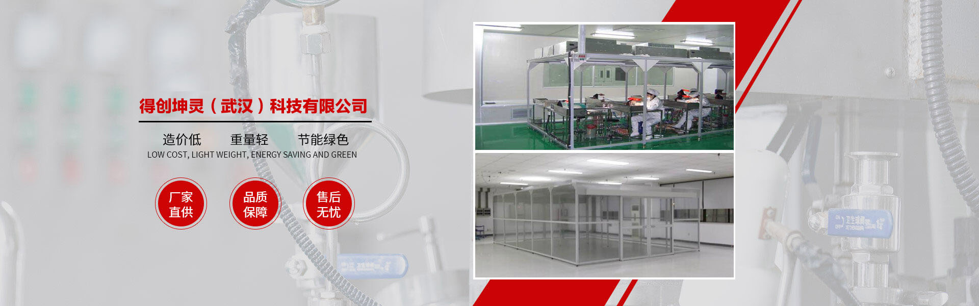 得創(chuàng)坤靈成立于2010年6月,專業(yè)從事食品無菌車間、GMP車間、電子無塵車間、食品醫(yī)藥包裝車間、醫(yī)療器械車間、潔凈棚、土建工程簡易房、無菌實驗室、組合式空調(diào)機組等項目的設(shè)計、裝修、施工、調(diào)試、安裝為一體的凈化工程公司,承接十萬級、萬級、千級、到百級的凈化車間、無塵車間、無塵室、潔凈廠房、潔凈室工程的改造與建設(shè)。 作為中國潔凈室系統(tǒng)工程及設(shè)備制造高品質(zhì)、專業(yè)化的代表,得創(chuàng)秉承“追求完美品質(zhì)、超越客戶期望”的理念,通過對客戶生產(chǎn)環(huán)境的深入研究及多年的工程實踐,積累了豐富的潔凈室空調(diào)凈化系統(tǒng)及節(jié)能優(yōu)化設(shè)計、項目管理及施工經(jīng)驗,綜合實力始終處于業(yè)界領(lǐng)先地位。 公司資質(zhì)齊全,包括裝飾裝修工程二級、機電安裝二級、電子與智能化二級、消防工程二級、環(huán)保工程二級;擁有多名高級工程師及暖通設(shè)計工程師,有著醫(yī)藥凈化工程設(shè)計、食品無菌食設(shè)計、電子無塵車間設(shè)計經(jīng)驗,長年與設(shè)計院有著良好的合作和溝通關(guān)系。公司多年專業(yè)從事凈化工程安裝業(yè)務(wù),擁有數(shù)次在全國各地有著豐富安裝經(jīng)驗的安裝工程隊伍,在大型管道及彩板安裝方面有著豐富的安裝經(jīng)驗和先進的現(xiàn)場管理體系。 公司產(chǎn)品廣泛服務(wù)于電子、光電、微電子、光纖光纜、精密機械、生物制藥、食品飲料、航空航天等眾多領(lǐng)域。我們始終以技術(shù)為中心、以創(chuàng)新為動力、以服務(wù)為己任。以一流的產(chǎn)品質(zhì)量,良好的售后服務(wù),參與到激烈的市場競爭中來,贏得客戶的支持與信賴。 隨著公司的持續(xù)發(fā)展、隊伍的日益壯大,公司將一如既往地堅持"以客戶為中心"的理念,在激烈的市場競爭中迎頭奮進,以"創(chuàng)一流品牌、建一流企業(yè)"的品牌拓展戰(zhàn)略,面對機遇與挑戰(zhàn),開創(chuàng)一片嶄新的天地! 品質(zhì)成就夢想、秉承口碑相傳、得創(chuàng)凈化……